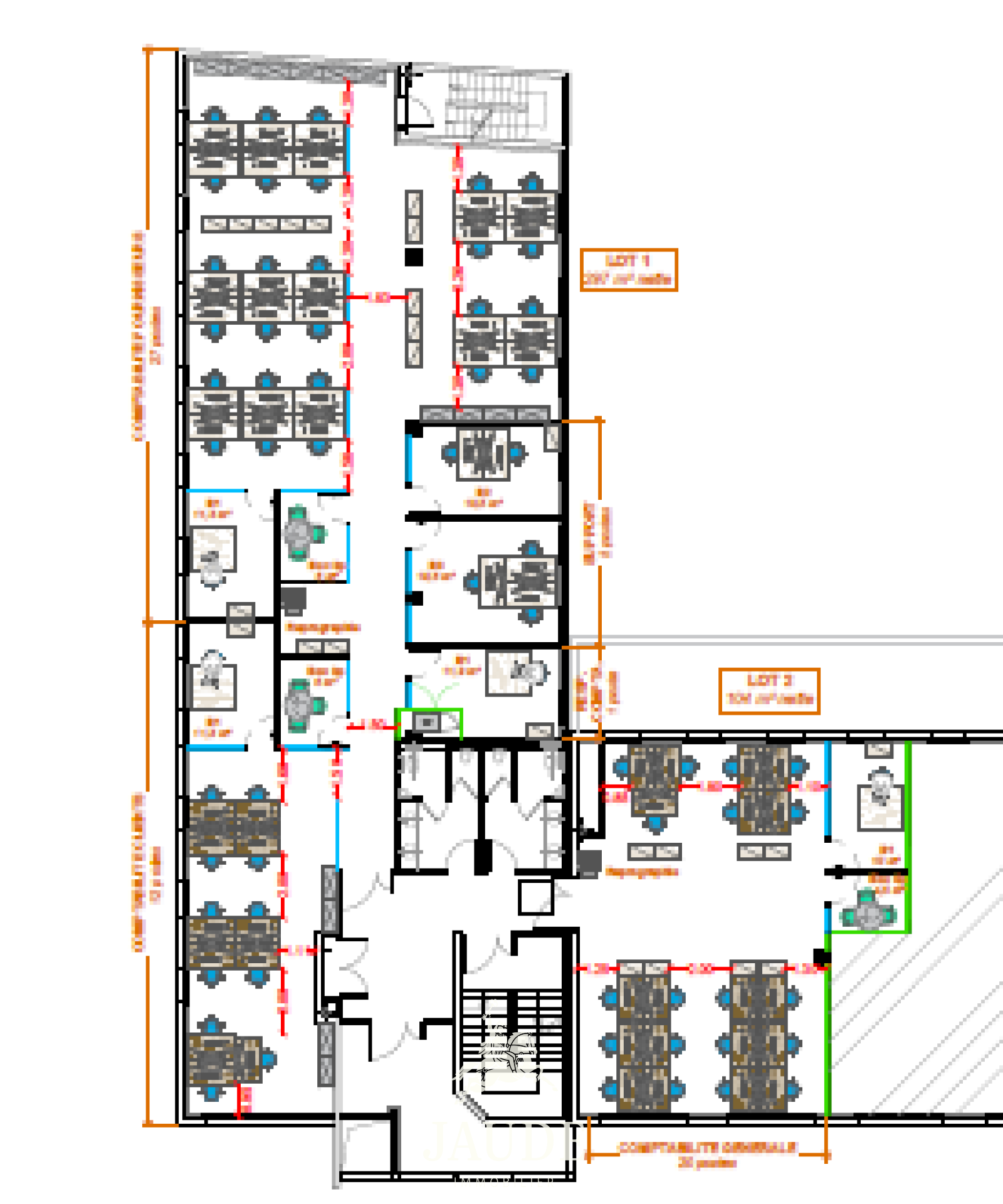 En partie cloisonnés, ces bureaux vous permettent d'occuper toute une aile de l'immeuble, de façon complémtement indépendante.
